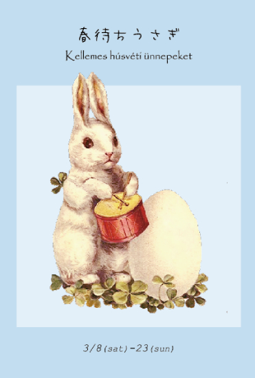 買い付けのうさぎのぬいぐるみやイースターの置物など並びます。