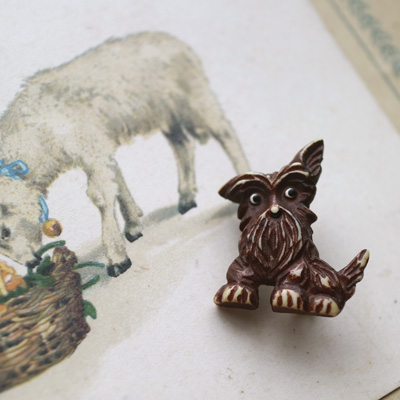 チェコ 小さなテリアのブローチ 茶