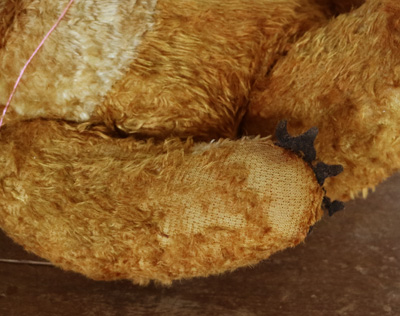 両手足のフェルトの爪は取れたり、破れたりしています。