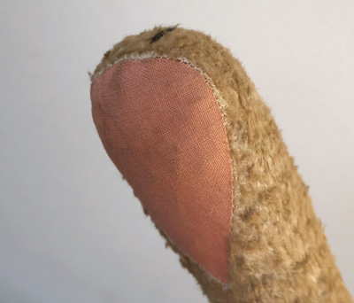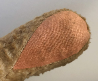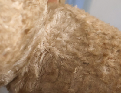 左足の付け根、糸が見えています。