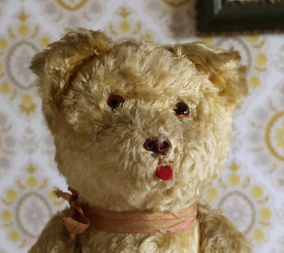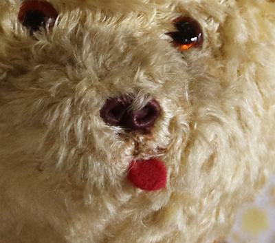 鼻の下に糊のようなものがついています。