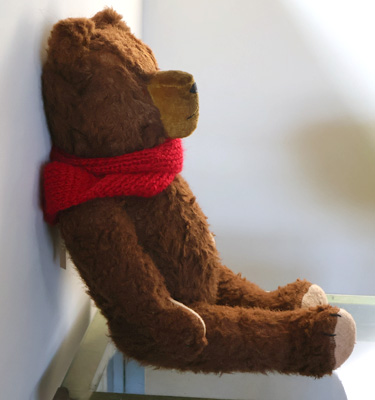 両足、肩の部分にモヘア生地が薄くなっている部分があります。