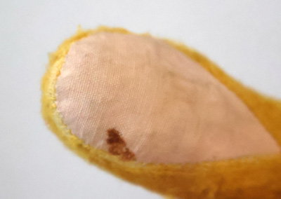 手足のパッチに汚れがあります。