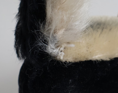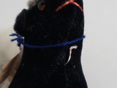尻尾の付け根の布端が出ています。
