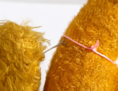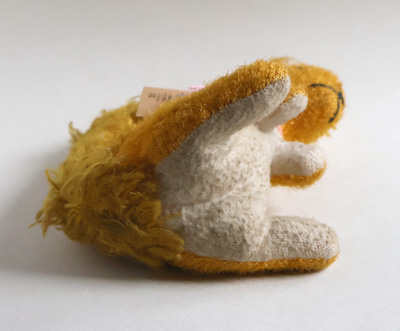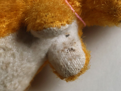 手の汚れ、胸の白部分の毛羽立ちがあります。