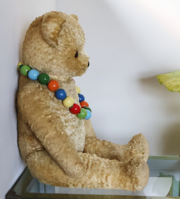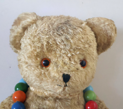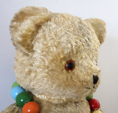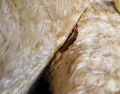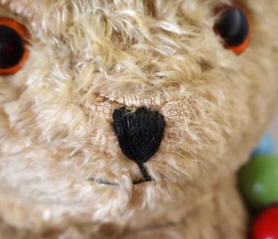 額に少し汚れがあります。お鼻回り、右手に少しモヘアのロスがあります。