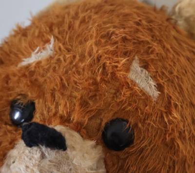 目の周りや手足の先、腕回りにモヘアのロスがあります。