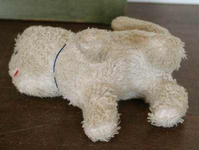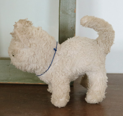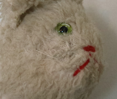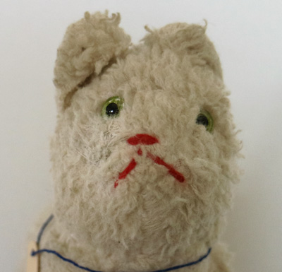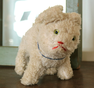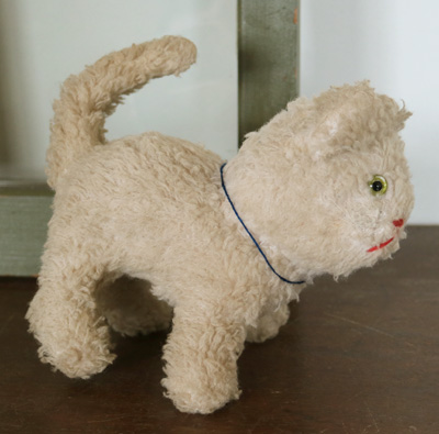 | チェコ 白ねこ はなぺちゃさん 白いねこさん。 鼻がぺちゃんこだから はなぺちゃさんと命名しました。 緑きれいな目はグラスアイ。 中のおそらく木毛入り。 固めの子です。 少しだけ傾いていますが、それもご愛嬌。 どうぞ仲良くしてあげてください。 ※左ほほの部分に、修繕の跡があります。 左耳は少し取れかかっています。 ファーのへたりや汚れもあります。 vintage、USED品とご理解ください。 <サイズ>:身長13p 横幅15.5cm(鼻から尻尾まで) 厚み7p <買付国>チェコ <年代>不明 |