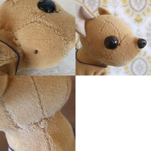 | ハンガリー 歩くチワワ ねじ式 ハンガリーで出会ったベージュのチワワ。 栗っとした大きな目が特徴的。 スムースのようなチワワさんです。 体の横のねじを回すと歩きます。 目は赤いプラスチックアイ。 体は固く、中は金属だと思います。 頭は綿入り。 どうぞ仲良くしてあげてください。 ※プラスチックの目に傷があります。 縫い目など作りの荒い部分があります。 他、経年による細かな汚れなどあります。 vintage、USED品とご理解ください。 <サイズ>高さ13p 厚み8p(正面から) 横幅13.5p(鼻から尻尾まで) <買付国>ハンガリー <年代>不明 |