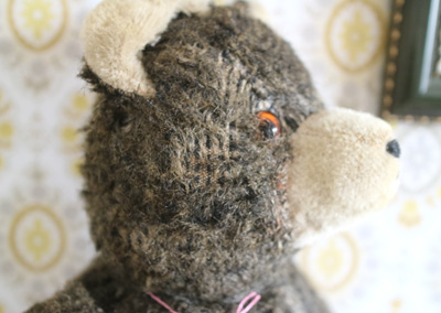| ドイツの蚤の市で出会った グレーのベアさん。 おすまし顔の子です。 鳴き笛がはいっていたようですが 壊れているようで、少しだけ鳴きます。 ※手足首は動きますが少し硬めです。 中の詰め物は木毛です。 目はグラスアイ 自分で座ることができます。 顔の周りや、手足の先など 毛の抜けがあります(4枚目) そのほか、汚れもあります。 ふき取りは軽くしています。 vintage、USED品とご理解ください。 口の刺繍など、少し補修しています。 <サイズ>身長48p 横幅26cm 座って33cm <買付国>ドイツ <年代>不明 |