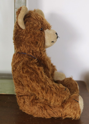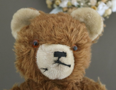 | ドイツの蚤の市で出会った 茶色のベアさん。 がっしりとした体格のベアさんです。 お口の刺繍は取れてしまっています。 仲良くしてあげてくださいね。 ※手足首は動きますが少し硬めです。 中の詰め物は木毛です。 目はグラスアイ 自分で座れます。 少し右側に傾いています。 手足のパッチに少し汚れ、毛の抜けがあります。 胴体などにも少し抜けがありますが 毛足が長いので、目立ちません。 vintage、USED品とご理解ください。 <サイズ>身長36p 横幅18cm 座って27cm <買付国>ドイツ <年代>不明 |