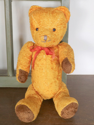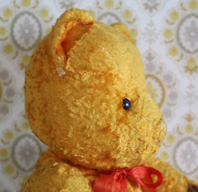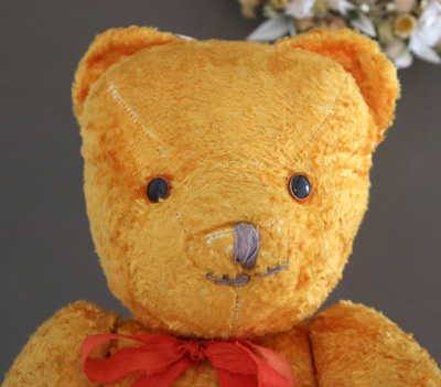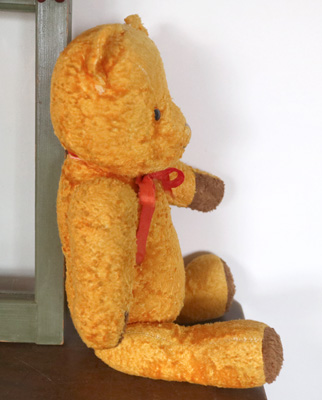 | ハンガリーの蚤の市で出会った 黄色いベアさん。 鼻の刺繍の一部が取れてしまった子ですが 愛くるしいお顔をしたベアさんです。 仲良くしてあげてくださいね。 ※手足首は動きますが 向かって右足は縫い付けられていて 動きません。 中の詰め物は綿です。柔らかいです。 目はプラスチックアイ。 一部毛のロスがあり、耳の修復の跡があり 経年による少しくたびれた感のあるベアですが かわいらしいなと思える範疇かと思います。 vintage、USED品とご理解ください。 <サイズ>身長41p 横幅21.5cm <買付国>ハンガリー <年代>不明 |