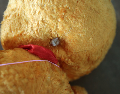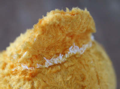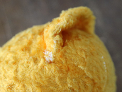 | 頭の裏に糸の跡があります。 目を引いたり、花の刺繍などの糸の跡です、 |