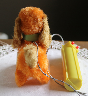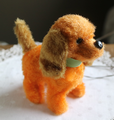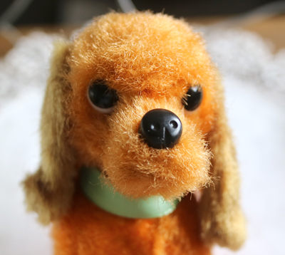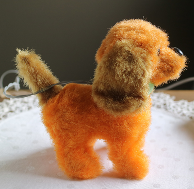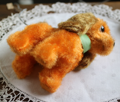 | チェコの古道具屋で出会った オレンジの犬。 箱入りでした。 黄色のプラスチックの筒に 電池を入れたら、手足やしっぽが動く おもちゃでしたが 経年劣化で、線が痛んでいるので 動きません。 線はカットしてもいいかもしれません。 箱入りだったので、毛並みもよく ポンチ目の目もかわいらしいです。 全体的に硬いです。 目はプラスチックアイ。 ※特に痛みはありません。 vintage、USED品とご理解ください。 <サイズ>身長12p 横幅13cm(頭からしっぽまで) 厚み6.5cm <買付国>チェコ <年代>不明 ※線をカットする場合ご連絡いただければ、カットします。 |