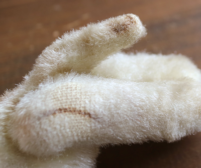 手の付け根部分から木毛が見えています。