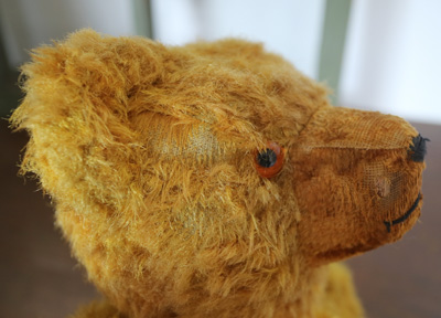 | ドイツらしいお顔のベアさん。 いかり肩で鼻がつんと飛び出たお顔です。 お顔の周りなどモヘアのハゲが目立ちますが とてもビンテージ感のある子ですね。 仲良くしてあげてくださいね。 ※手足は多少硬いですが動きます。 中の詰め物は木毛、グラスアイ。 自分で座れます。 両手のパッチに痛みがあります。 vintage、USED品とご理解ください。 <サイズ>身長47p 横幅30cm 座って32cm <買付国>ドイツ <年代>不明 |