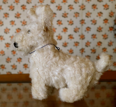 白いテリアのぬいぐるみ。 チェコのバザールからやってきました。 目はグラスアイ。 鼻はプラスチック。 耳にはワイヤーが入った しっかりとしたワンコです。 シミがあったり、毛が剥げていたりしますが まだまだ味わいのあるかわいい子です。 どうぞ仲良くしてあげてください。 サイズ:身長19p 横幅20cm(尻尾から鼻まで) 厚み6.5cm(正面から見て) |