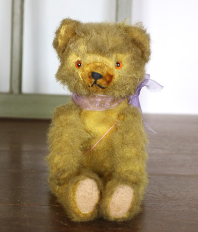 ドイツ 紫のリボンのくま YEドイツの蚤の市で出会った