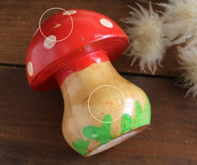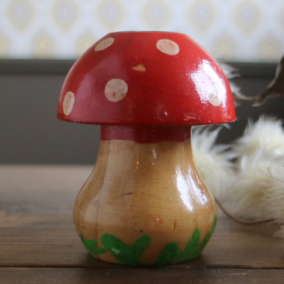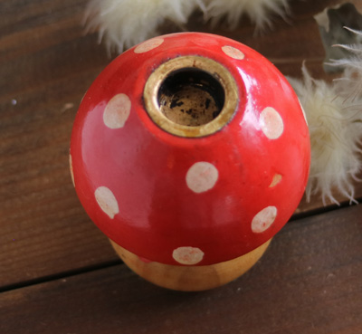| ドイツの木のキャンドルスタンド。 キノコのおじさん。 白いひげをたくわえた色白のおじさんです。 威厳のある顔つきですね。 でも優しくも見えます 頭の上の部分にキャンドルが乗ります。 飾って楽しんでもらっても。 ※赤いペイントがついていたり、一部剥げていたりします。(画像4枚目) 上部のキャンドルを立てる部分には使用感があります。 そのほか、ペイントのムラ、汚れ、細かな傷などもございます。 vintage、USED品とご理解ください。 <サイズ>高さ7p 直径5cm <買付国>ドイツ <年代>不明 |