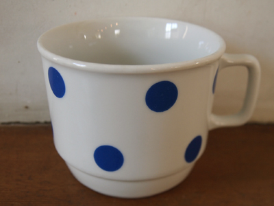 ハンガリー ZSOLNAY社の水玉マグカップ(青)