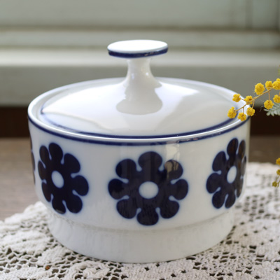 ハンガリー ホロハーザ社の青いお花のシュガーポット