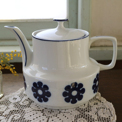 ハンガリー ホロハーザ社の青いお花のティーポット ハンガリーの陶器メーカーホロハーザのティーポット