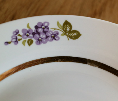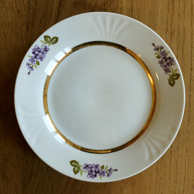 RPR リガ陶器工場 パープル色のお花のケーキプレート