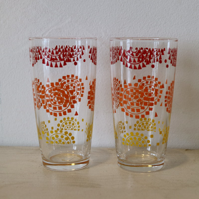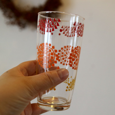 太陽のような模様のグラス。