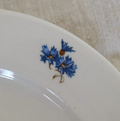 チェコスロバキア 青いお花のケーキプレート
