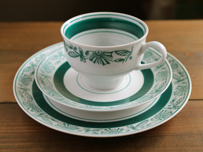 グリーンの模様がきれいなトリオセット。
